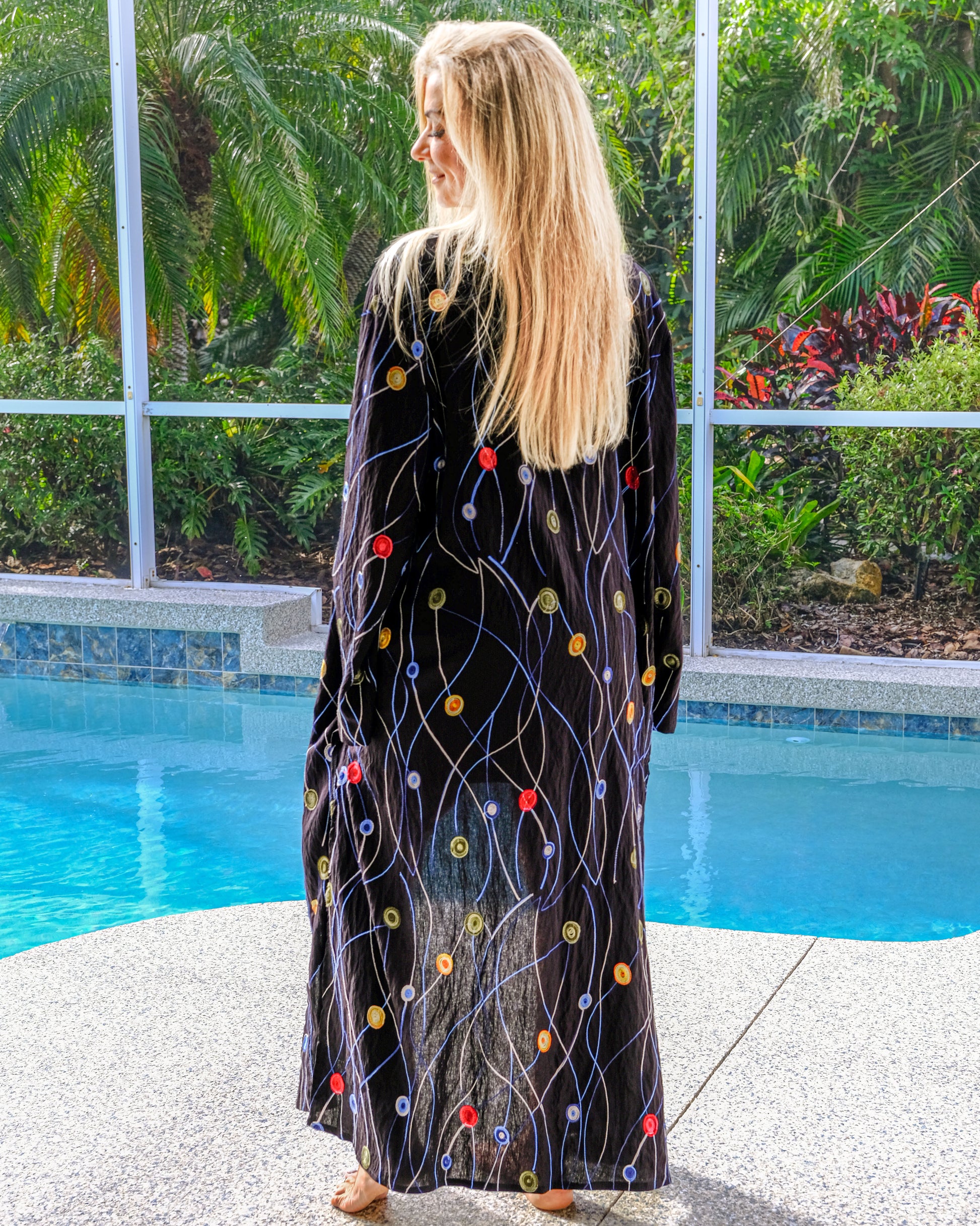 Lightweight embroidered viscose ,this kimono is a true statement piece.