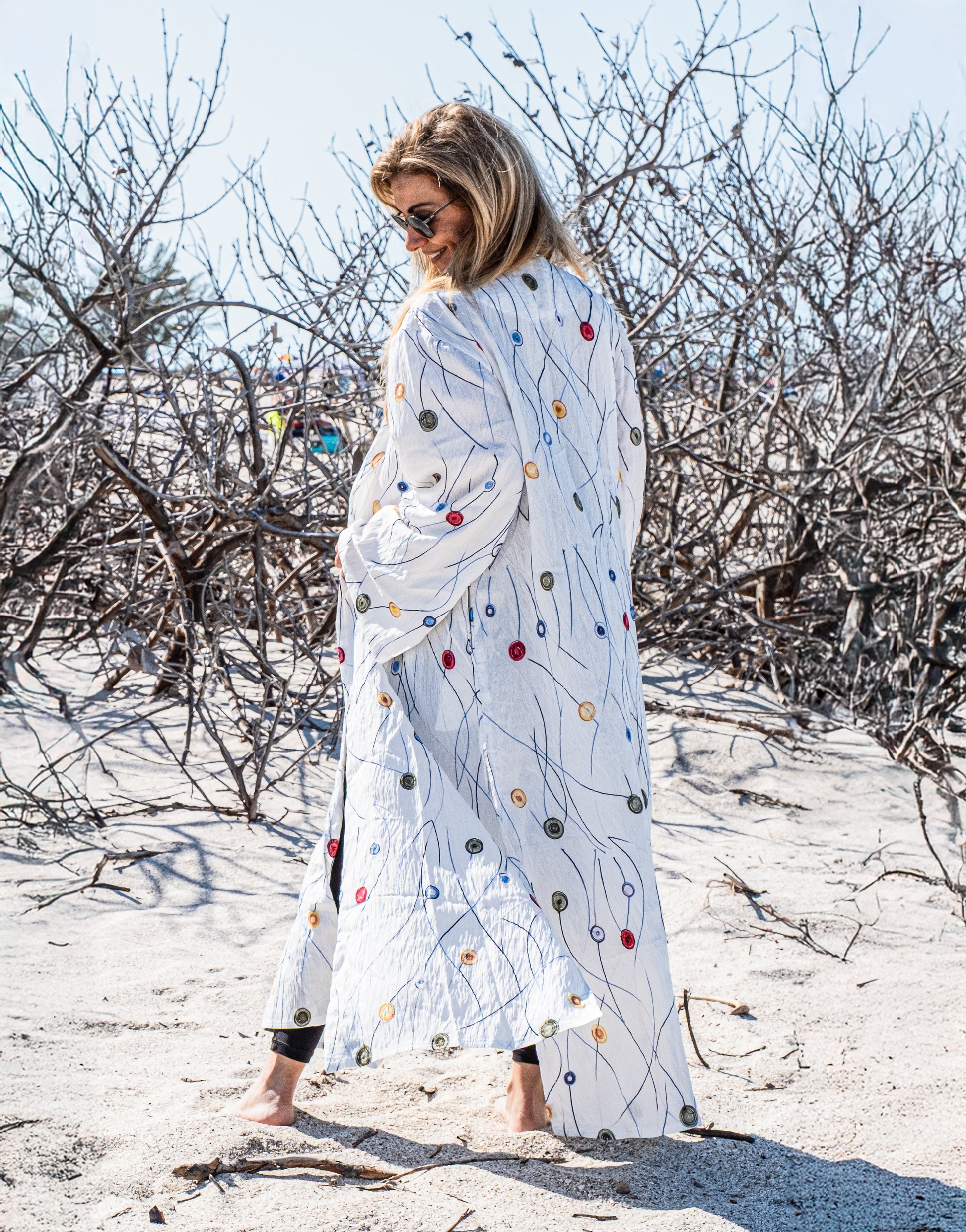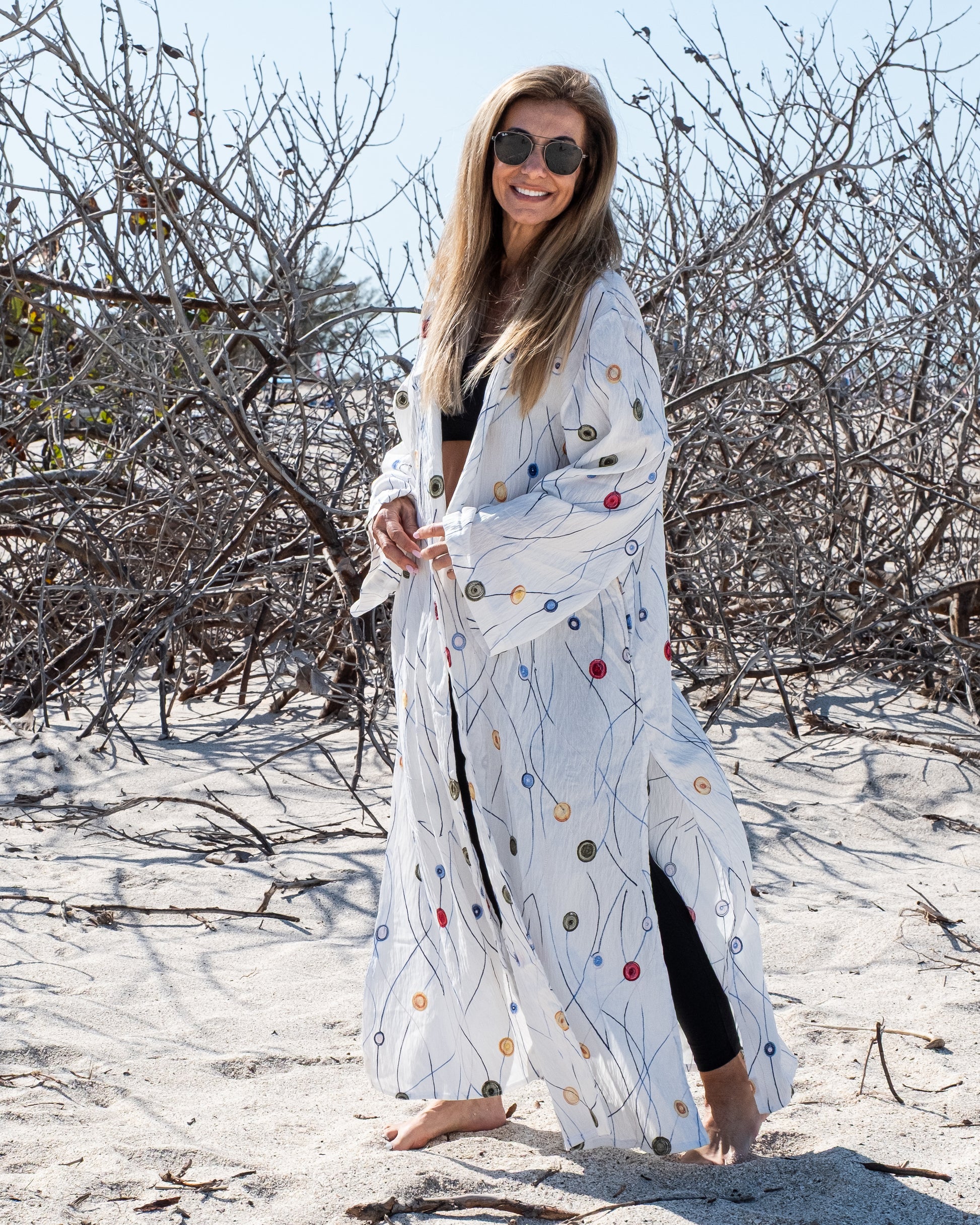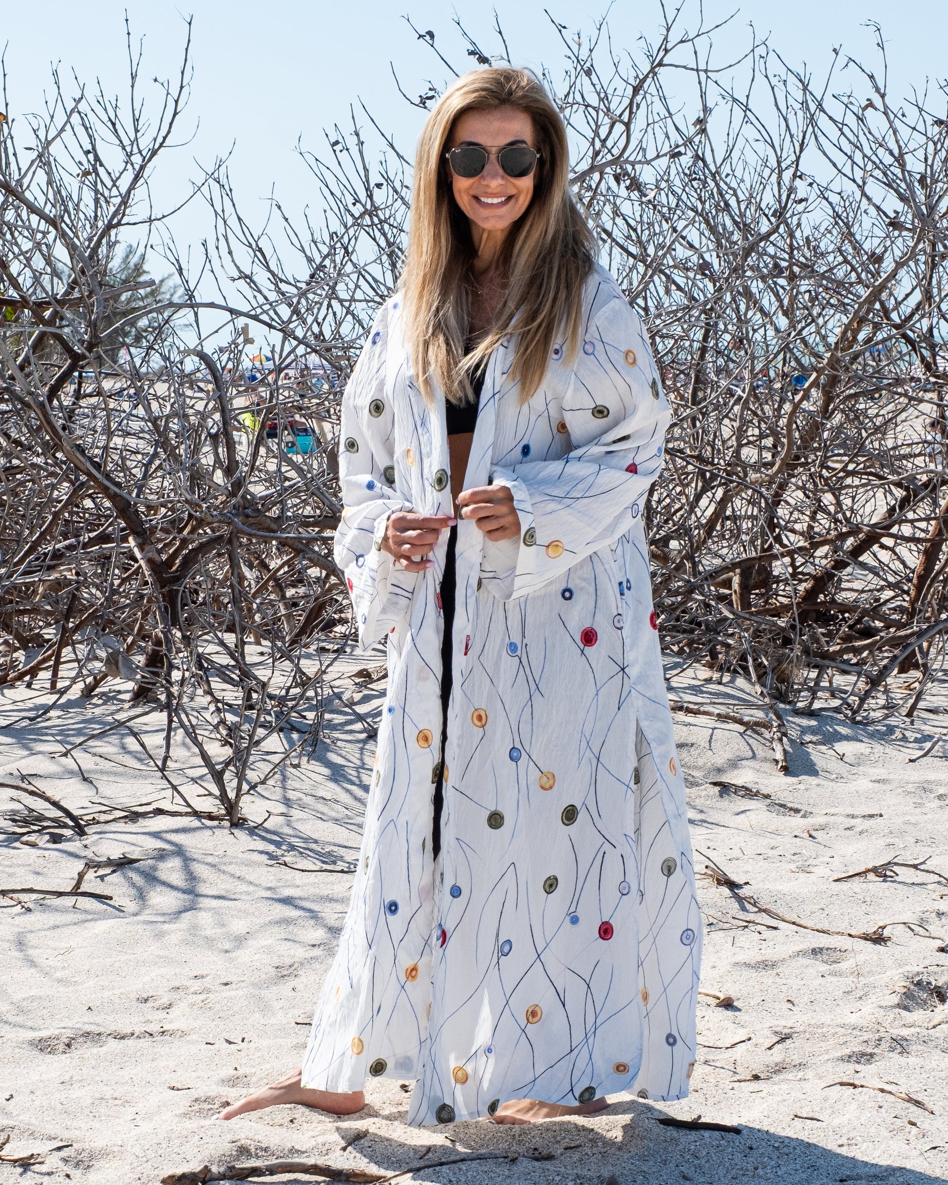 Lightweight embroidered viscose ,this kimono is a true statement piece.